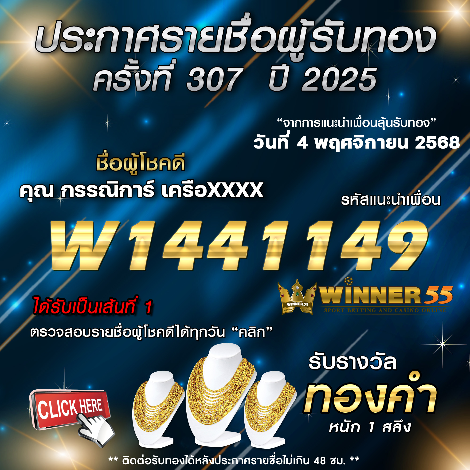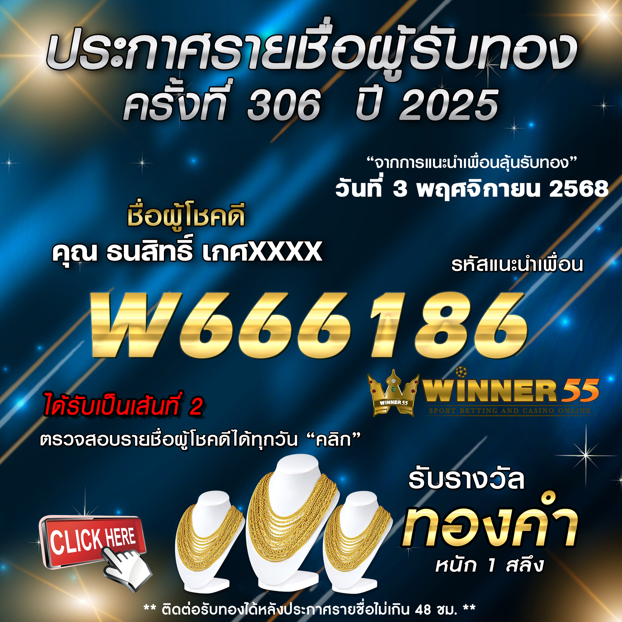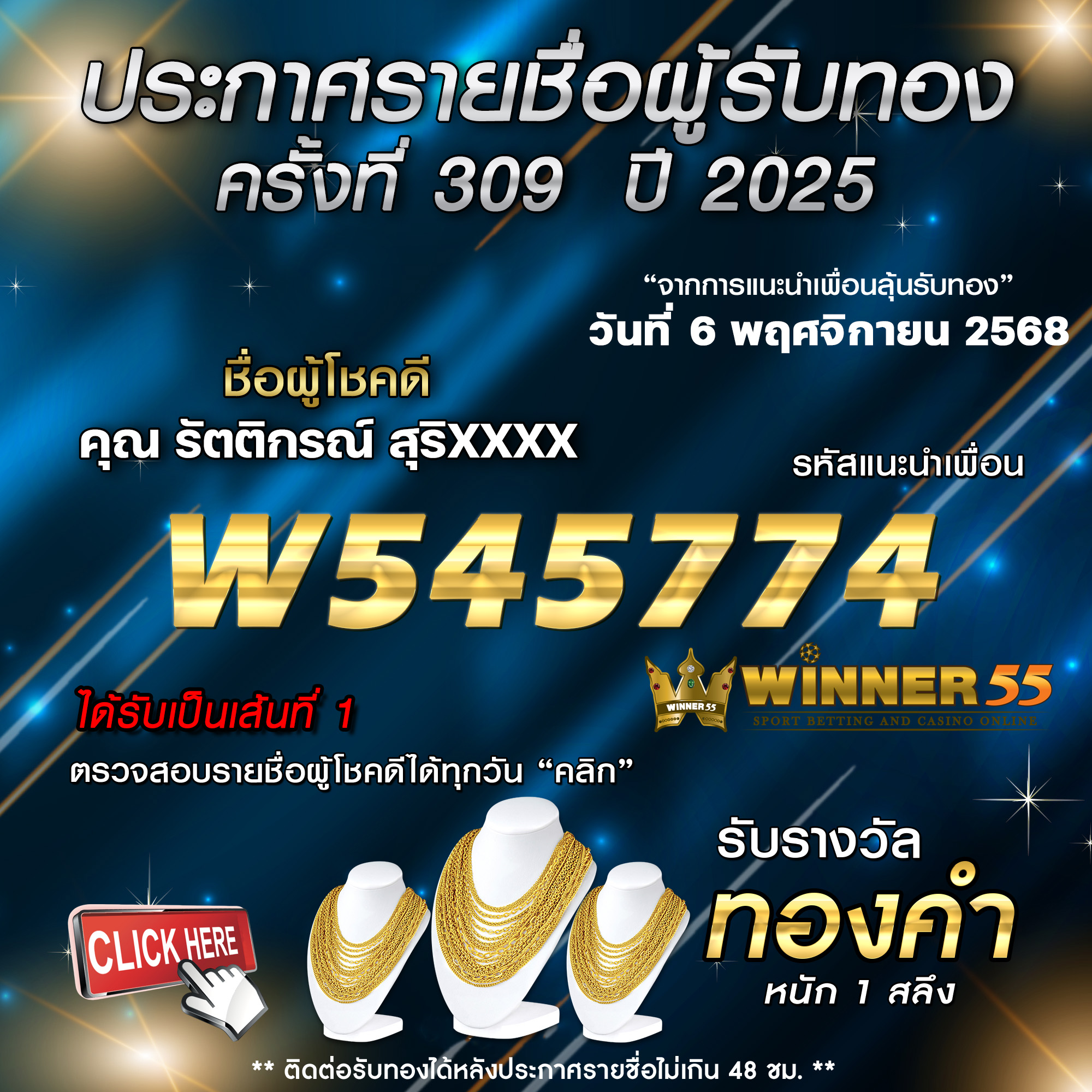 ประกาศรายชื่อผู้โชคดี ได้รับโบนัส กิจกรรมฝากเงินลุ้นโบัส "ต้อนรับฤดูกาล 2025 "